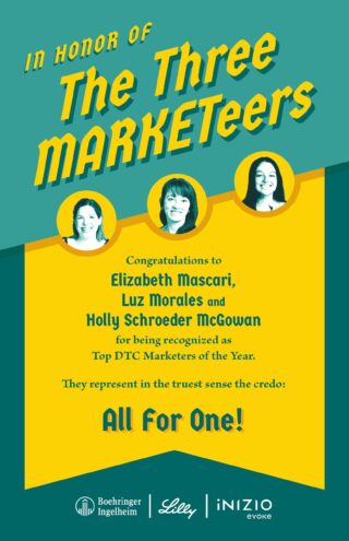 Established in 2001, the Top DTC Marketers of the Year award recognizes extraordinary pharmaceutical marketers who drive innovation and improve patient outcomes through education, engagement, and communication. Honorees are selected based on measurable accomplishments, influence on future patient launches or campaigns, and demonstrated leadership in advancing patient communications.